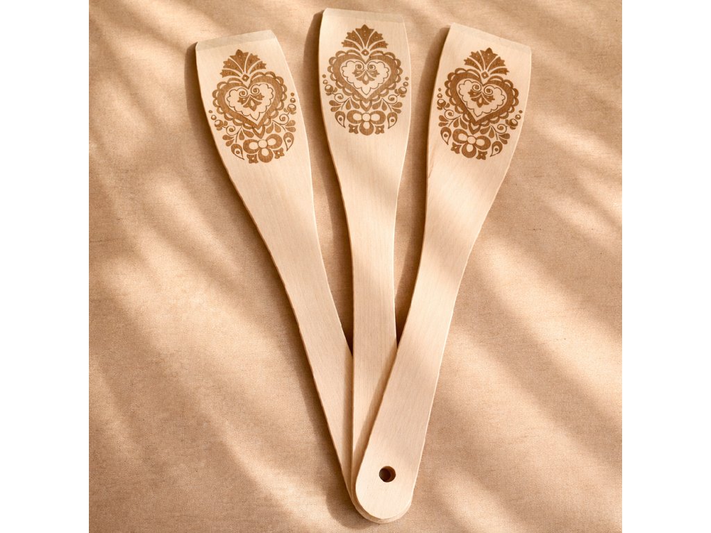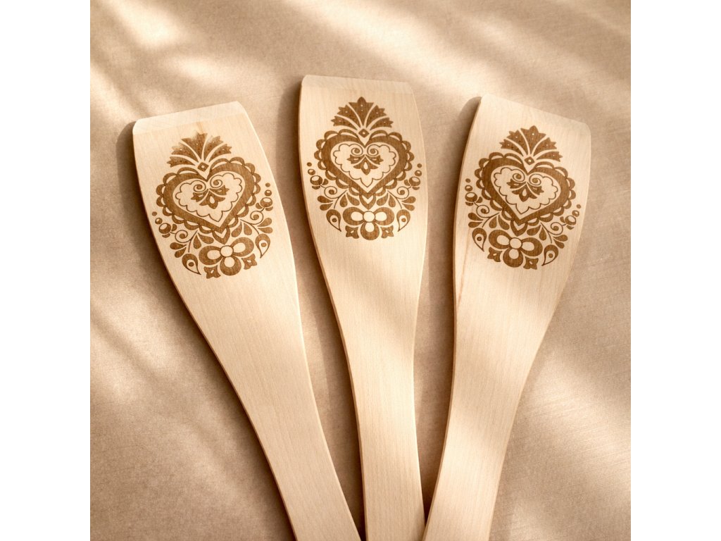 Přeneste si krásu lidového ornamentu do vaší kuchyně! Jedinečná dřevěná obracečka zdobená tradičním ornamentem z Podluží.