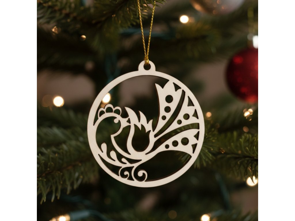 Dřevěná vánoční ozdoba z topolové překližky s jedinečným podlužáckým ornamentem vypalovaná laserem