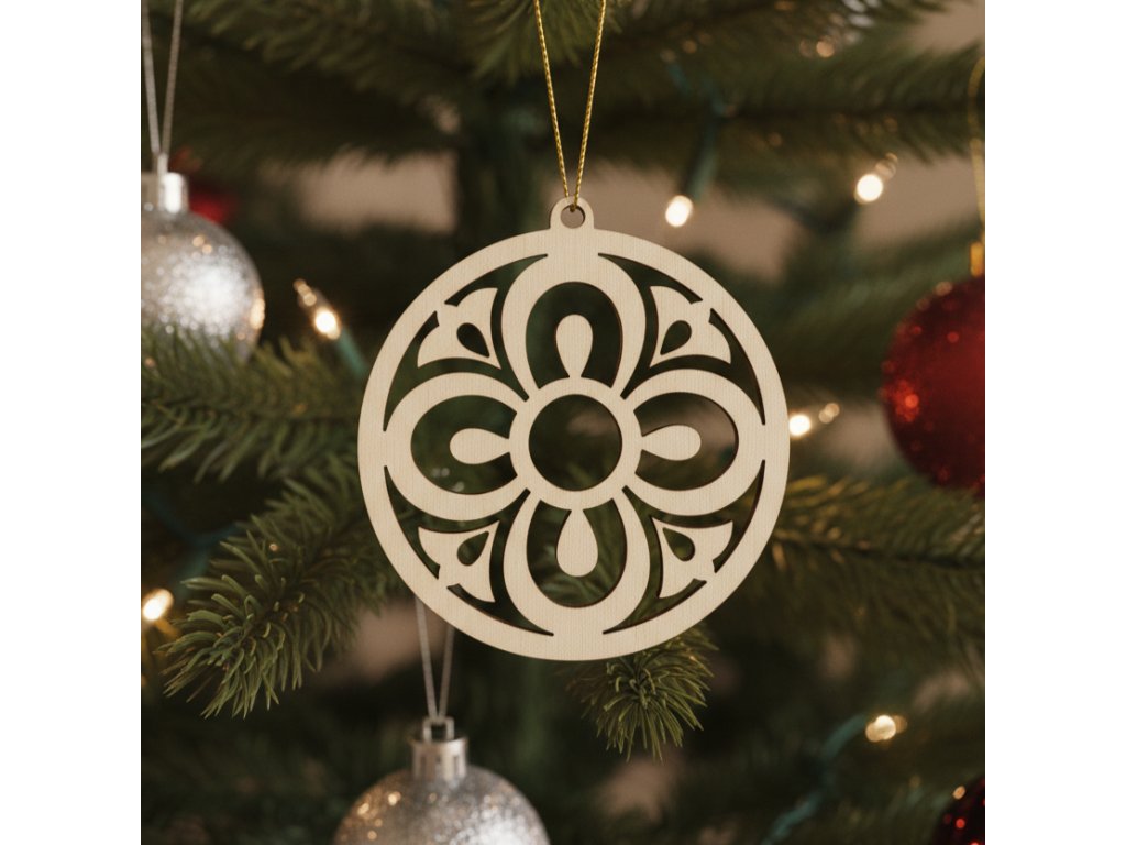 Dřevěná vánoční ozdoba z topolové překližky s jedinečným podlužáckým ornamentem vypalovaná laserem
