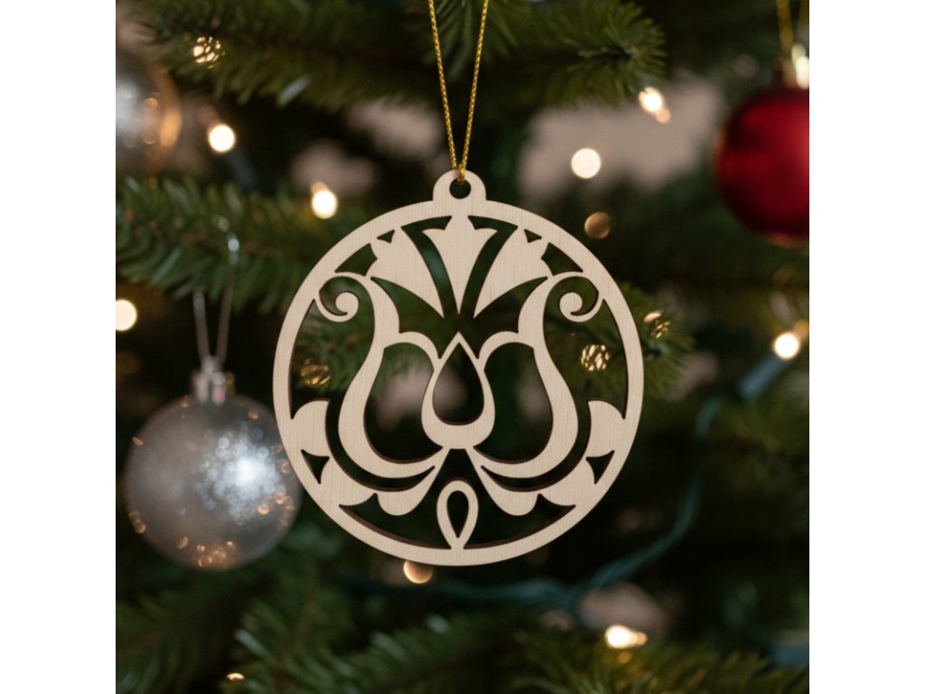 Dřevěná vánoční ozdoba z topolové překližky s jedinečným podlužáckým ornamentem vypalovaná laserem