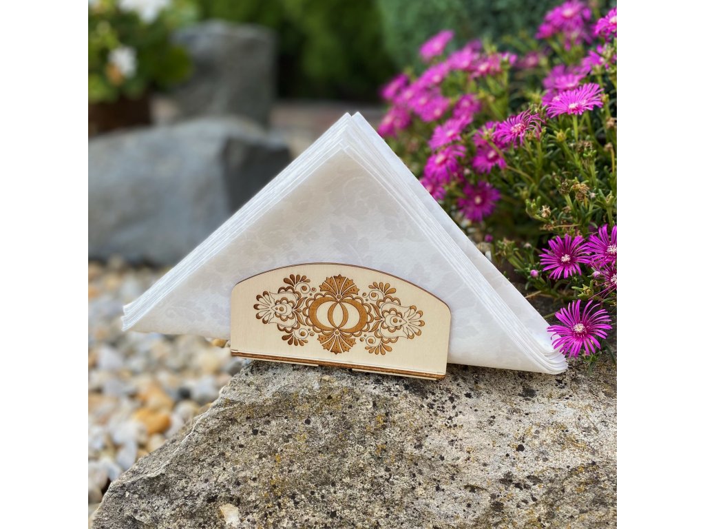 Dodejte své sváteční tabuli nádech folkloru a ozdobte svůj stůl stojánkem na ubrousky, na němž jsou vygravírované krásné podlužácké ornamenty. Dřevěný stojánek na ubrousky se tak stane skvělým dekoračním doplňkem pro váš jídelní stůl. Nezabírá mnoho místa a umožňuje uspořádat ubrousky pro Vás nebo vaše návštěvy. Přidejte do své domácnosti tento stylový prvek a mějte tak ubrousky vždy na dosah ruky a elegantně srovnané.
