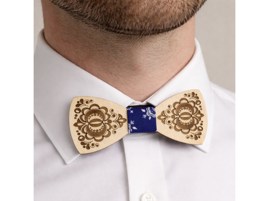 Originální dřevěný motýlek s jemným folklorním ornamentem je stylovým doplňkem pro každou slavnostní i neformální příležitost. Spojuje tradiční motivy s moderním designem a zaujme na první pohled.
